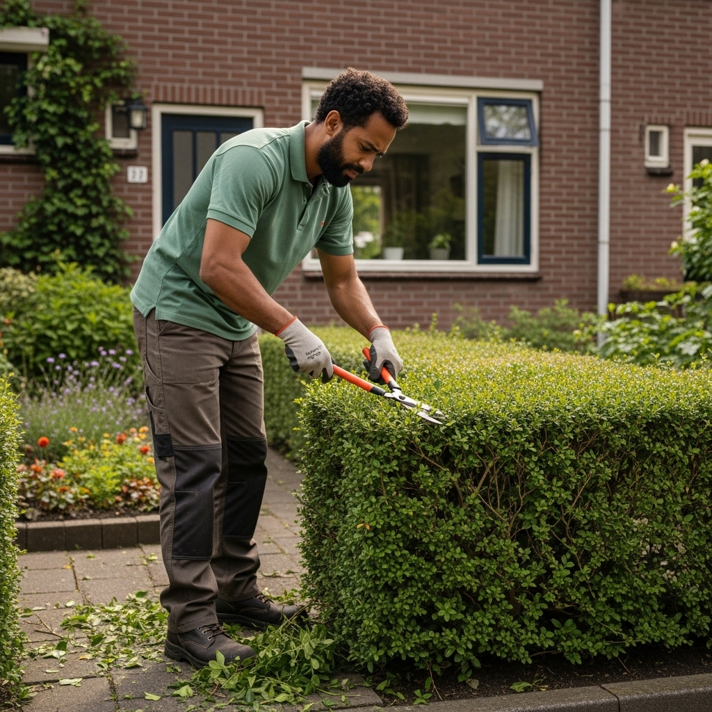 Tuinen leegruimen, bomen, struiken en heggen snoeien, tegels, terrassen of vlonders reinigen, kleine bestratingswerkzaamheden, algemeen onderhoud