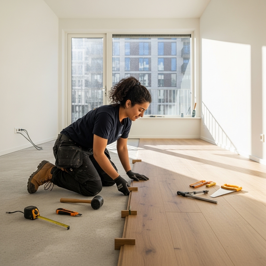 Wij leggen uw nieuwe vloer (laminaat, tapijt, kliksystemen PVC, zeil, vinyl) en behangen de muren van uw kamers